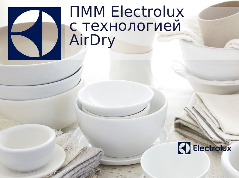Electrolux представляет новое поколение посудомоечных машин с технологией сушки AirDry. Благодаря новой технологии дверца посудомоечной машины автоматически открывается на 10 см после каждой программы мойки, и посуда становится полностью сухой с помощью естественной вентиляции, чтобы можно было сразу убрать её в шкаф, без оставшихся разводов от воды.
