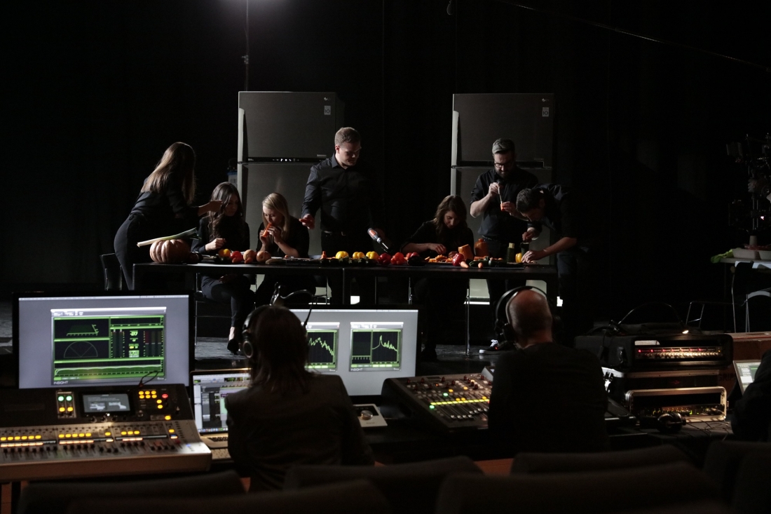 Музыканты, играющие на съедобных музыкальных инструментах, демонстрируют, как можно уменьшить объем пищевых отходов при помощи технологий заморозки от LG