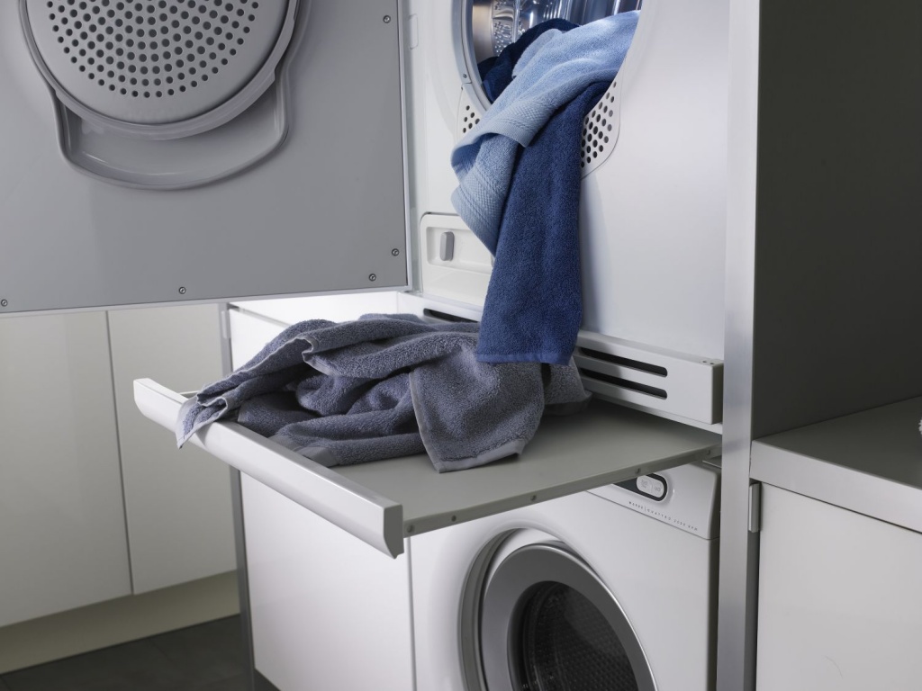 Почти все известные изготовители стиральных и сушильных машин мировых брендов нашли отлично решение. Они предлагают применить соединительный элемент для закрепления сушильной машины прямо над стиральной. Благодаря чему создается небольшая "колонка" из техники.