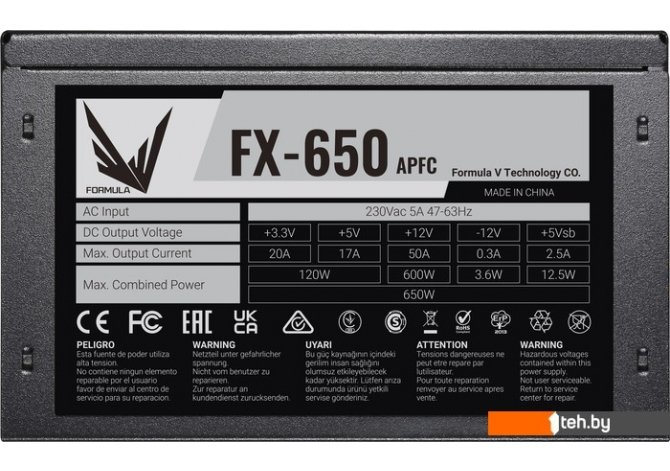 Фотографии, описание и технические характеристики модели блока питания Formula FX-650 650W PZH1155BN91R0-01 взяты из открытых источников, официального сайта производителя или представительства Formula в Республике Беларусь.