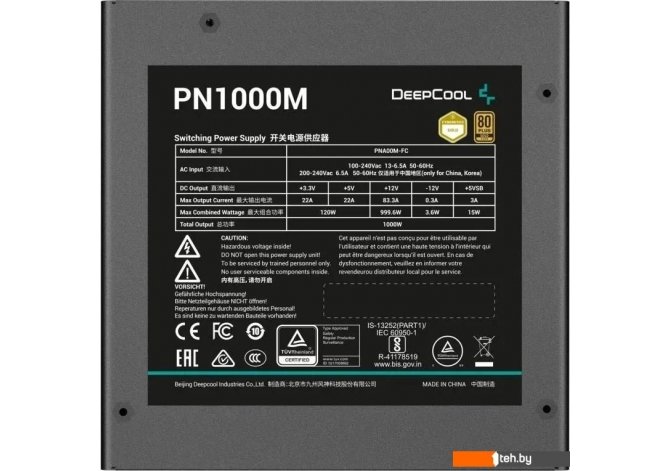 Фотографии, описание и технические характеристики модели блока питания DeepCool PN1000M взяты из открытых источников, официального сайта производителя или представительства DeepCool в Республике Беларусь.