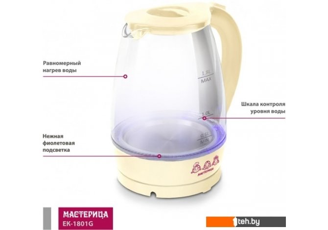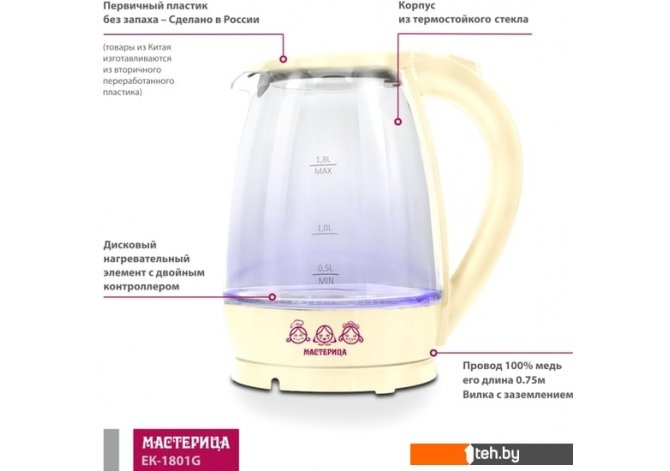 Фотографии, описание и технические характеристики модели Мастерица EK-1801G (ваниль) взяты из открытых источников, официального сайта производителя или представительства Мастерица в Республике Беларусь.