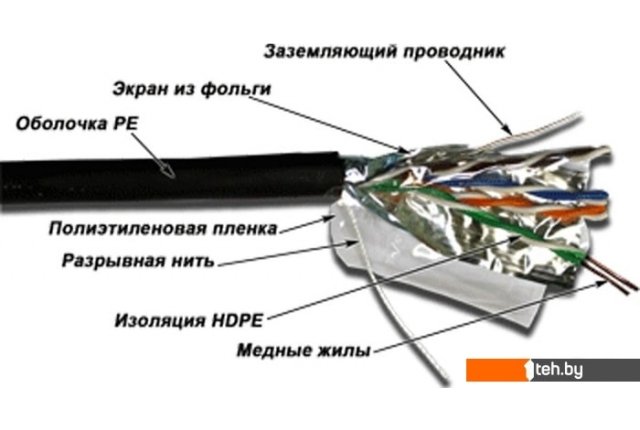 | Информация | Кабель 4-парный, экранированный, категории 5E для наружной прокладки |