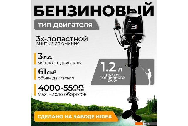 | Информация | Лодочный мотор HD3FHS — компактное и мощное решение для маломощных лодок, которое обеспечивает надежную работу на воде. С бензиновым двухтактным двигателем мощностью 3 л.с. (2.2 кВт) и рабочим объемом 61 см?, этот мотор подходит для небольших прогулочных и рыболовных лодок. Мотор лодочный станет отличным выбором для тех, кто ценит эффективность и простоту в эксплуатации. Управление мотором осуществляется румпелем. Запуск двигателя — ручной, а система подачи топлива работает на карбюраторе, что способствует стабильной работе. Водяное охлаждение и винтовой способ движения способствуют надежной эксплуатации. Двухтактный лодочный мотор совместим с лодками длиной до 2.8 м и высотой транца 40.4 см. Особенности: Мощность 3 л.с. обеспечивает хорошую динамику и скорость. Встроенный топливный бак объемом 1.2 л. Система смазки с предварительным смешиванием (бензин + масло 50:1) для повышения надежности. 3-лопастной алюминиевый винт для эффективного движения. Сухой вес 11.8 кг облегчает транспортировку и установку. HD3FHS — надежный помощник для активного отдыха на воде, который способствует получению удовольствия от водных приключений. Купить лодочный мотор можно в любое время, чтобы обеспечить комфорт и высокую производительность во время путешествий. |
