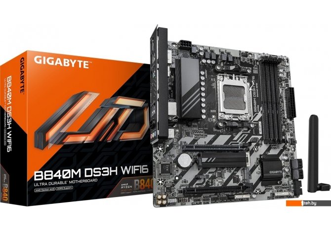 Фотографии, описание и технические характеристики модели материнской платы для компьютера Gigabyte B840M DS3H WiFi6 взяты из открытых источников, официального сайта производителя или представительства Gigabyte в Республике Беларусь.
