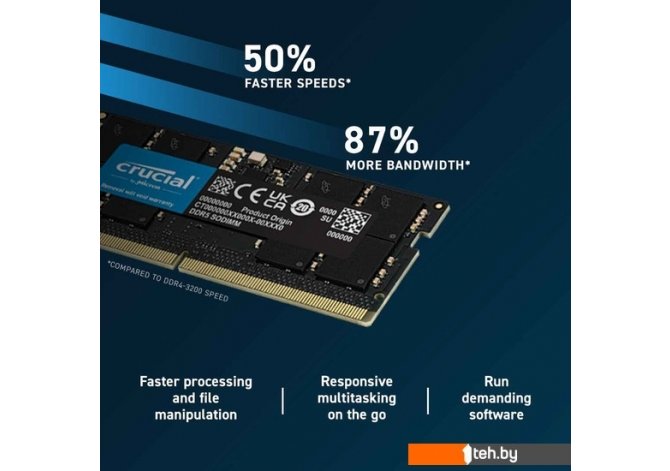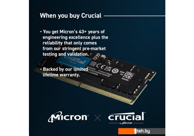 Фотографии, описание и технические характеристики модели оперативной памяти Crucial 32ГБ DDR5 SODIMM 5600 МГц CT32G56C46S5 взяты из открытых источников, официального сайта производителя или представительства Crucial в Республике Беларусь.