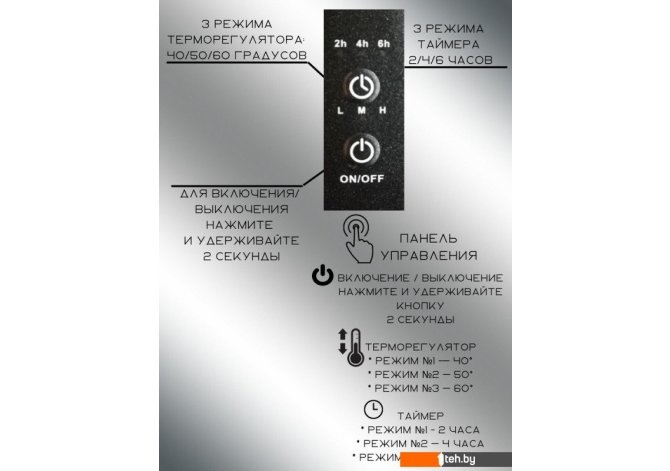 Квадро 50x80 (терморегулятор с таймером слева, черный матовый)