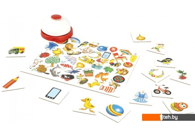| Комплектация | 4 большие карточки, 80 маленьких игровых карточек, звонок. |
