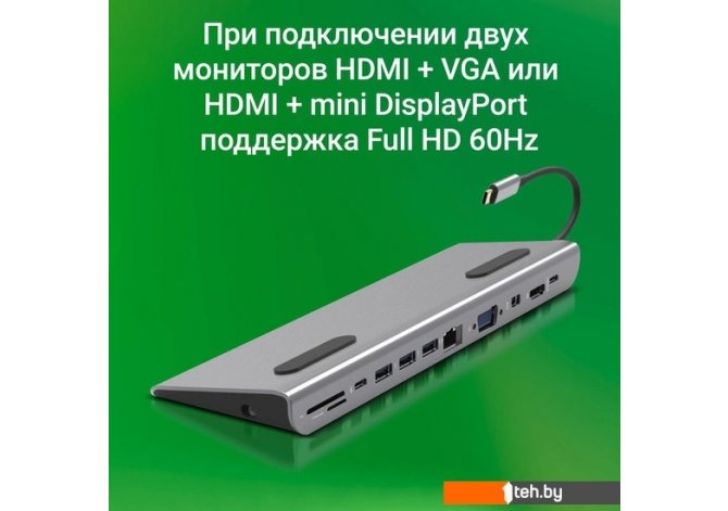 | Все разъемы на адаптере | USB-A 3.2 Gen1 (5 Гбит/с), USB-C 3.2 Gen1 (5 Гбит/с), HDMI, mini DisplayPort, VGA, RJ-45, USB-C (только для зарядки) |