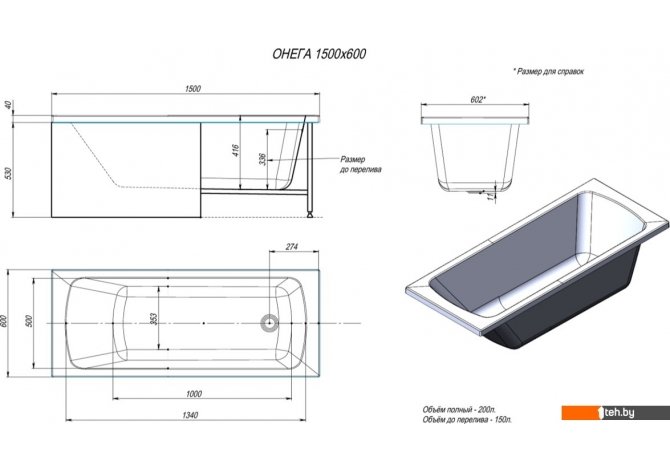 Фотографии, описание и технические характеристики модели Alex Baitler Onega 150x60 взяты из открытых источников, официального сайта производителя или представительства Alex Baitler в Республике Беларусь.