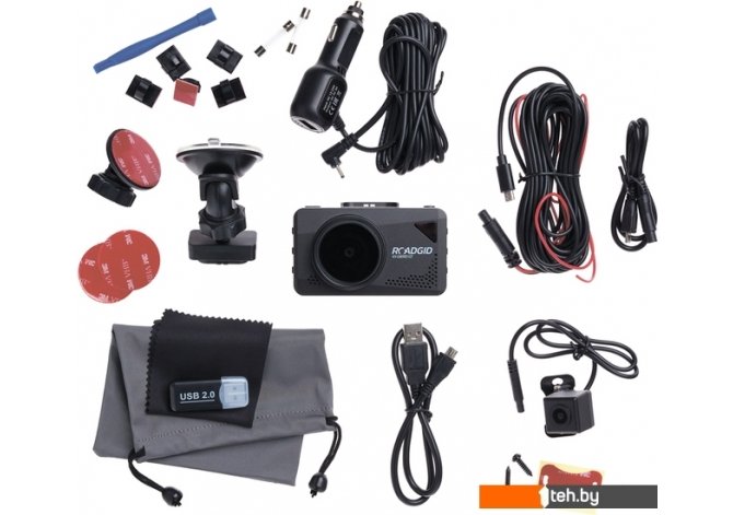 | Комплектация | - Адаптер питания с доп. USB; - Крепление на присоске; - Крепление на 3М скотче; - USB-кабель; - Предохранители к АЗУ (2шт); - Поляризационный фильтр; - Мешочек для хранения; - Клипсы для провода зарядного устройства; - Лопатка для провода зарядного устройства; - Камера заднего вида; - Кабель для камеры заднего вида 5.5м; - Кабель для камеры заднего вида 0.5м. |