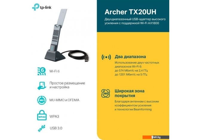 Фотографии, описание и технические характеристики модели беспроводного адаптера TP-Link Archer TX20UH взяты из открытых источников, официального сайта производителя или представительства TP-Link в Республике Беларусь.