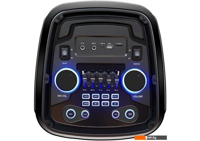 | Информация | -Ключевые характеристики Портативная акустическая система с поддержкой Bluetooth, FM-радио, функцией караоке на два микрофона и встроенным аккумулятором емкостью 4500 мАч рассчитана на до 10 часов автономной работы. Акустика оснащена 2 мощными НЧ-динамиками по 20.3 см и отдельным высокочастотным динамиком 5.08 см для насыщенного и объемного звука. Поддержка воспроизведения с USB-накопителей и microSD-карт до 32 ГБ, а также AUX-вход 3.5 мм обеспечивает универсальность в подключении источников аудио. -Преимущества и отличия Система выделяется динамической RGB-подсветкой с тремя режимами и удобной ручкой для переноски, что делает устройство отличным выбором для выездных вечеринок и домашних мероприятий. Пятиполосный эквалайзер и функция Mega Bass позволят детально настроить звучание под любые жанры, а наличие пульта дистанционного управления обеспечит комфортное управление на расстоянии. -Практичность Корпус из прочного пластика и отсутствие лишних проводов способствуют легкости транспортировки и мобильности. Встроенный LED-дисплей информирует о текущем режиме работы и настройках. -Уникальность Модель сочетает в себе яркие световые эффекты, расширенный набор функций для караоке и автономную работу, что редко встречается в устройствах подобного класса. |