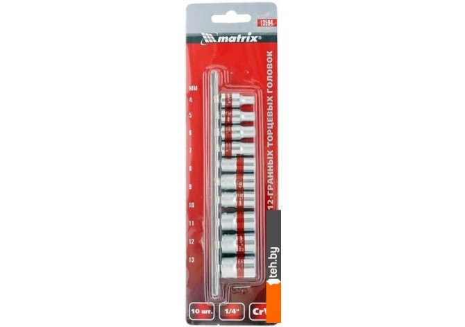 | Комплектация | Набор торцевых головок, 1/4" 12-ти гр. CrV 4-13мм |