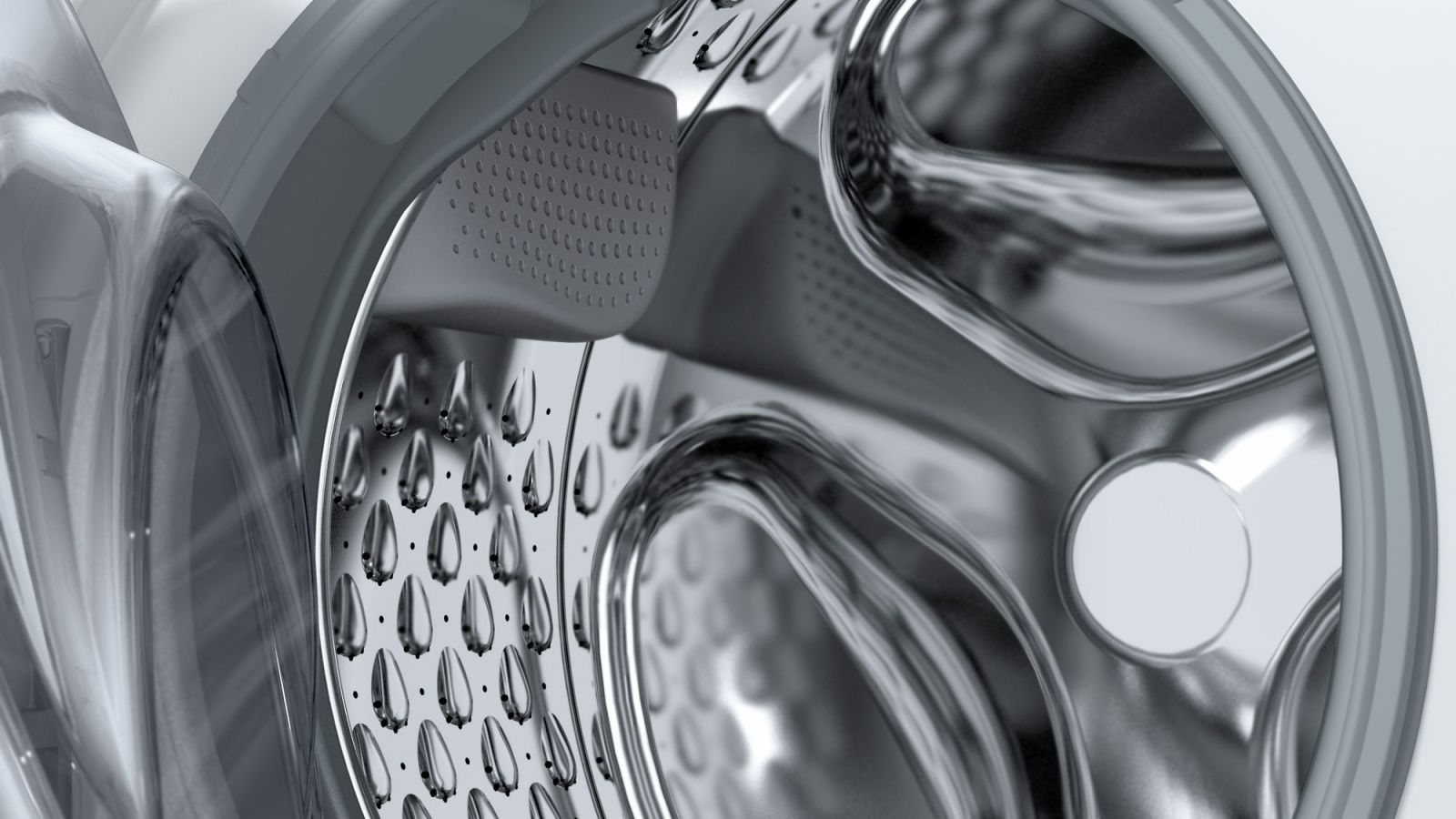 Каплеобразные выступы поверхности барабана и захваты имеют асимметричную форму. При вращении барабана в одном направлении белье подвергается более интенсивному воздействию крутой стороны выступов и захватов, при вращении в другом направлении белье подвергается мягкому воздействию пологой стороны. Более 20 комбинаций скорости и направления движения барабана в зависимости от программы.