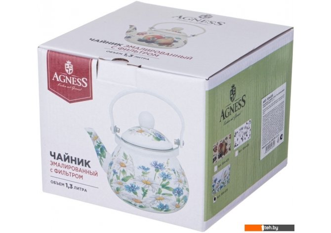| Информация | - Чайник без свистка Agness 934-635 из эмалированной посуды легко моется и не удерживает болезнетворных микробов и бактерий. - Удобная ненагревающаяся ручка и возможность легко наливать воду с помощью клапана на ручке. - Подходит для всех видов плит и проходит 3 этапа обжига для сохранения яркости расцветок деколи и прочности. - Правила ухода за посудой просты: не использовать абразивные чистящие средства, мыть с нейтральными моющими средствами и избегать резких перепадов температур. |