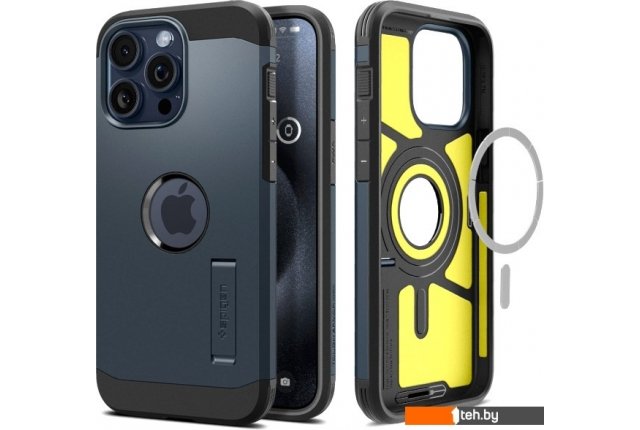 Фотографии, описание и технические характеристики модели чехла на телефоны Spigen Tough Armor (MagFit) для iPhone 15 Pro ACS06734 (темно-синий) взяты из открытых источников, официального сайта производителя или представительства Spigen в Республике Беларусь.