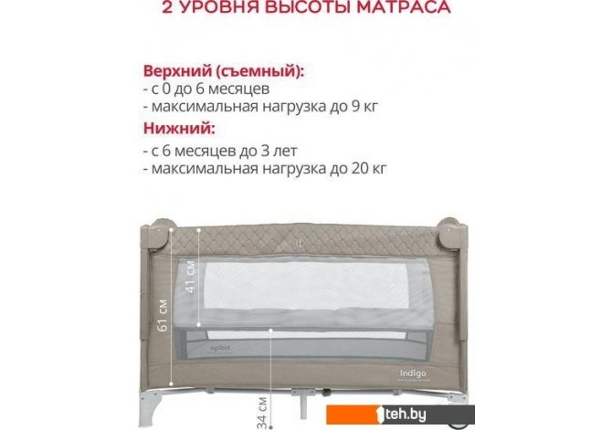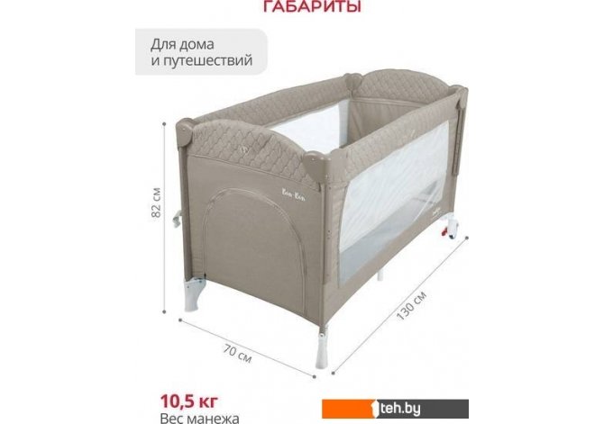 | Информация | Удобный, функциональный, складной детский манеж с функцией кровати или приставной кроватки 3 в 1 станет надежной, безопасной игровой площадкой и комфортным местом для сна Вашему крохе. Особенностью данной кровати–манежа является регулируемая боковая стенка, которая имеет 4 уровня высоты и позволяет использовать ее как приставную детскую кроватку ко взрослой. Для надежной фиксации к родительской кровати предусмотрен страховочный трос. Манеж-кровать имеет 2 уровня. Предназначен для детей с рождения и выдерживает нагрузку до 20 кг. Для малышей в возрасте от 0 до 6 месяцев предусмотрен верхний уровень, который может служить полноценной кроваткой для новорожденного. Максимальный вес второго уровня до 9 кг. Манеж трансформер для игр имеет жесткую основу и уже оборудован складным съемным матрасиком. |