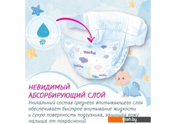 | Информация | Эластичный поясок мягко и плотно облегает талию малыша, препятствует подтеканию жидкости вдоль спины. Легкие застежки-липучки препятствует повреждению кожи малыша: они рассчитаны на многократное приклеивание к изделию и отклеивание без риска разрыва внешнего слоя подгузника. Новый дышащий нижний слой моментально распределяет влагу внутри и не дает ей слеживаться, защищает нежную кожу малыша от сыпи, оставляя ее сухой и чистой.Уникальный состав среднего впитывающего слоя обеспечивает быстрое впитывание жидкости и сухую поверхность подгузника, защищая кожу малыша от покраснений. Мягкие прилегающие манжеты надежно защищают края от протекания |