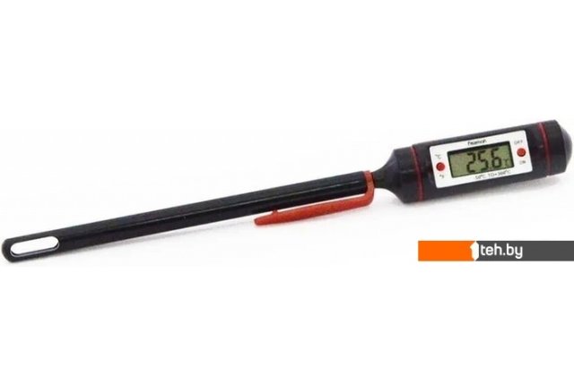 | Информация | Измеряемый диапазон температур от-50°C до +300°C с показаниями как по шкале Цельсия, так и по шкале Фаренгейта. Корпус из прочного пластика с жидкокристаллическим дисплеем и стальным щупом. Точные показания актуальной температуры за 5-7 секунд. Защитный чехол с клипсой для безопасного хранения как на домашней, так и профессиональной кухне. Диаметр щупа 3,8мм, длина 108мм. Элемент питания LR44 в комплекте. |