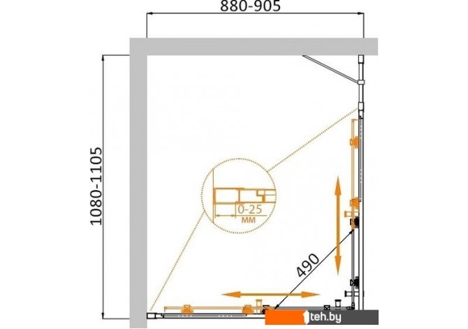 Монтажв угол (к двум стенам)