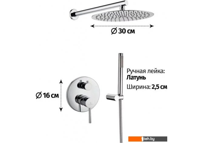 | Диаметр (ширина) верхнего душа | 300 мм |
