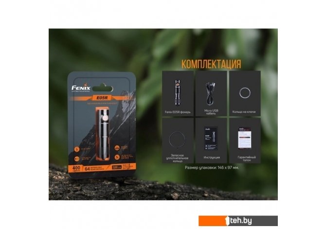 | Комплект поставки | фонарь модели Fenix E05R, кабель для зарядки micro-USB, кольцо на ключи, запасное уплотнительное кольцо, инструкция пользователя, талон гарантии. |
