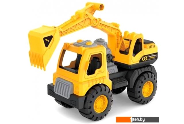 | Информация | Машина-экскаватор. В игрушке предусмотрен фрикционный механизм движения (на разгон), позволяющий ей ехать вперёд самостоятельно. Задние колеса ведущие. Платформа с ковшом поворачивается на 360 градусов с забавным трескучим звуком. Ковш поднимается и опускается. В кабину можно усаживать небольшие фигурки. |