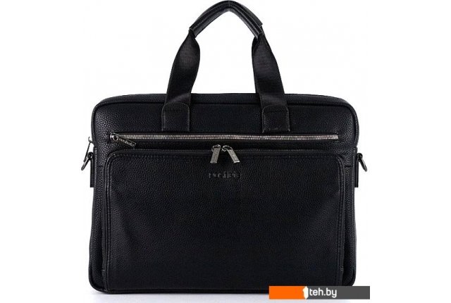 | Информация | - Стильная функциональная деловая сумка выполнена из искусственной кожи черного цвета. - Модель прямоугольной формы, с двумя ручками, укрепленными кожаными накладками и съемным плечевым ремнем. - Два отделения на молнии, с фирменной подкладкой. - В основном — карман на молнии, два накладных кармана, отсек для ноутбука с уплотненной стенкой на липучке. - На лицевой стороне — вместительный накладной карман, карман на молнии. |