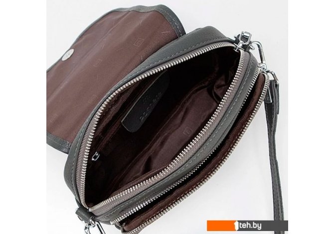 | Информация | ? Сумка Poshete 892-H8347H-DGR (темно-серый) с съемным регулируемым плечевым ремнем. ? Клапан на магнитной кнопке закрывает накладной карман на молнии и отделение на молнии. ? Внутри отделения: текстильная подкладка, карман на молнии, накладной карман. ? На задней стороне — карман на молнии. |