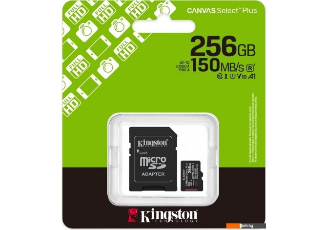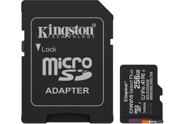 Фотографии, описание и технические характеристики модели карты памяти Kingston Canvas Select Plus microSDXC 256GB SDCS3/256GB (с адаптером) взяты из открытых источников, официального сайта производителя или представительства Kingston в Республике Беларусь.