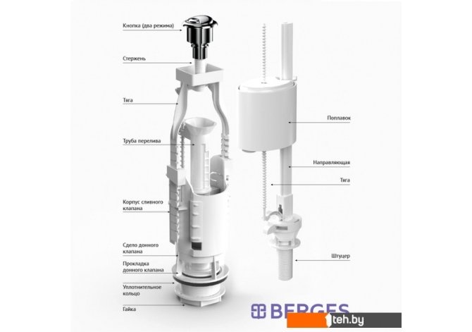 | Информация | Двухрежимный слив, кнопка гальваника, подключение нижнее, штуцер латунь |