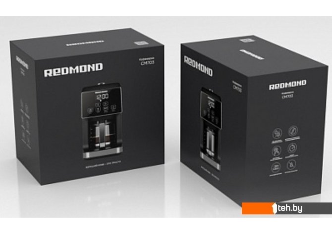 Фотографии, описание и технические характеристики модели кофеварки Redmond CM703 взяты из открытых источников, официального сайта производителя или представительства Redmond в Республике Беларусь.
