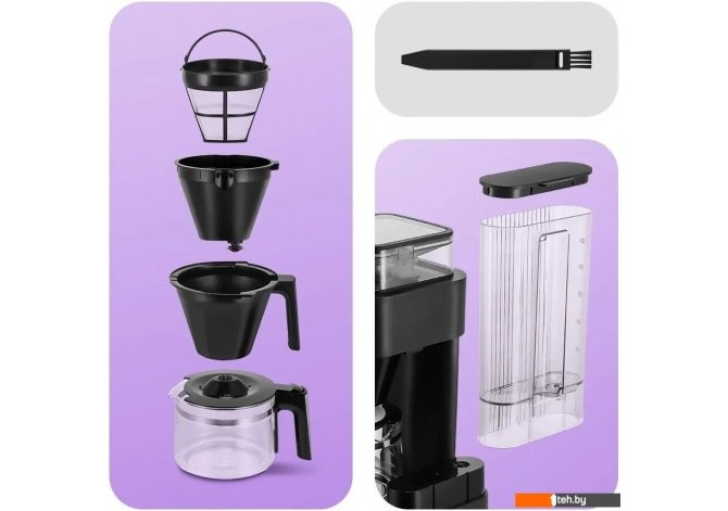 | Информация | -Ключевые характеристики Автоматическая капельная кофеварка с мощностью 1000 Вт, рассчитанная на приготовление кофе из молотого и зернового кофе. Вместительный резервуар для воды 1.35 л и кофейник на 1.25 л делают устройство оптимальным для дома или офиса, а встроенная кофемолка с регулировкой степени помола расширяет возможности приготовления. -Преимущества и отличия Устройство оснащено функцией отложенного старта, что позволяет заранее программировать время приготовления кофе. Кофемолка интегрирована в конструкцию и может использоваться отдельно, а система "анти-капля" предотвращает пролив напитка на платформу. -Практичность Съемные элементы – воронка, фильтр, кофейник и резервуар для воды – упрощают очистку и обслуживание. Электронное управление с кнопками обеспечивает интуитивное использование, а специальная щеточка помогает поддерживать чистоту устройства. -Уникальность Уникальная система подачи кофе реализована через клапан, который предотвращает капание, когда кофейник снят с платформы, а подогрев платформы гарантирует горячий кофе до 40 минут после приготовления. Читать дальше |