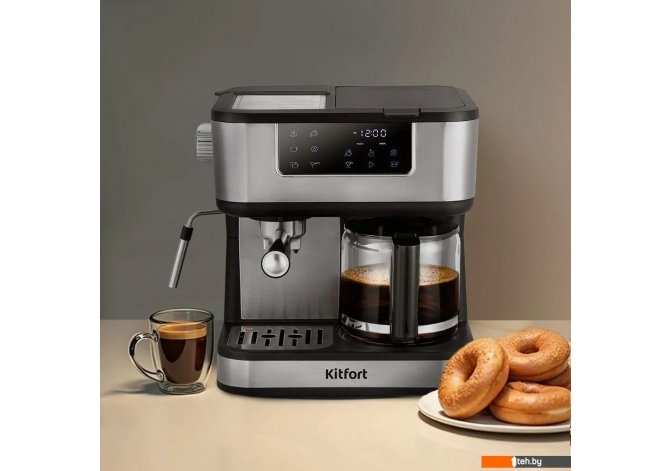 Фотографии, описание и технические характеристики модели кофеварки Kitfort KT-7524 взяты из открытых источников, официального сайта производителя или представительства Kitfort в Республике Беларусь.