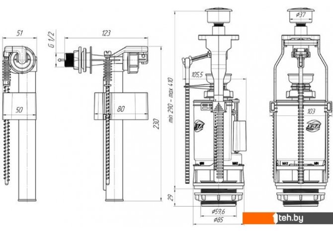 | Комплектация | кнопка (1 шт.), арматура спускная (1 шт.), арматура наполнительная (1 шт.) |