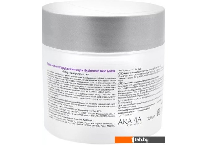 Фотографии, описание и технические характеристики модели Aravia Маска Professional Hyaluronic Acid Mask 300 мл взяты из открытых источников, официального сайта производителя или представительства Aravia в Республике Беларусь.
