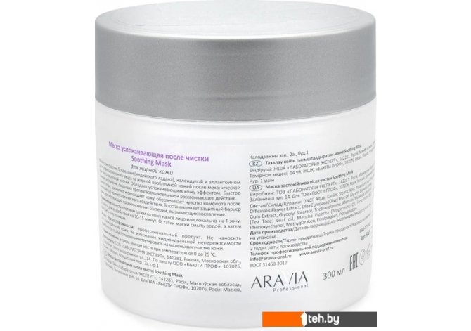 Если хотите купить Aravia Маска Professional Soothing Mask успокаивающая 300 мл то следует уточнить все параметры и габариты модели перед покупкой. Представленые характеристики на сайте 1teh.by могут отличаться от действительных или указанных производителем. Описание, фото товара и технические характеристики представлены для справки.