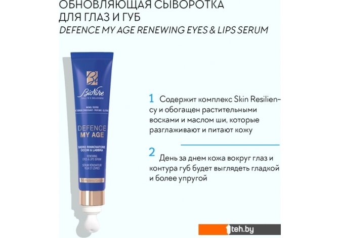 Фотографии, описание и технические характеристики модели BioNike Сыворотка для век Defence My Age Renewing Eyes Lips Serum (15 мл) взяты из открытых источников, официального сайта производителя или представительства BioNike в Республике Беларусь.