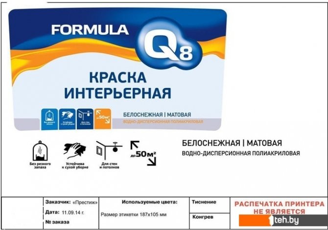 | Информация | Для окраски деревянных, бетонных, кирпичных, цементных, гипсокартонных, оштукатуренных, бумажных и других поверхностей (ДВП, ДСП и т. д., кроме металлических). Предназначены для применения в производственных, жилых и общественных зданиях, в том числе больницах, школьных и дошкольных учреждениях. Высушенное покрытие можно протирать влажной мягкой ветошью. |