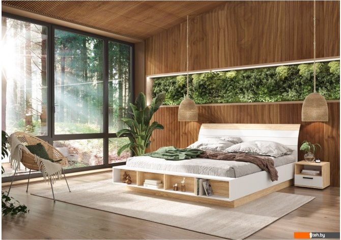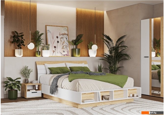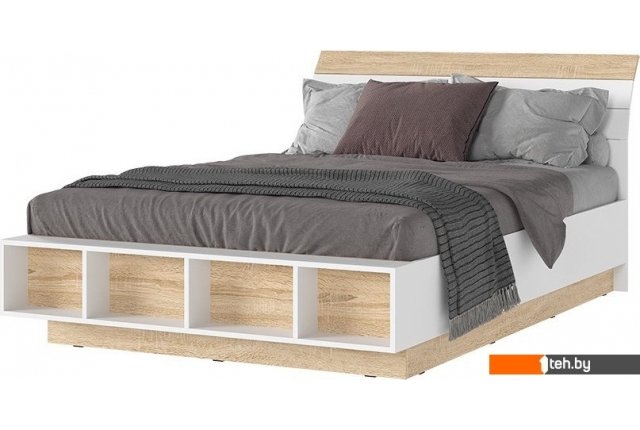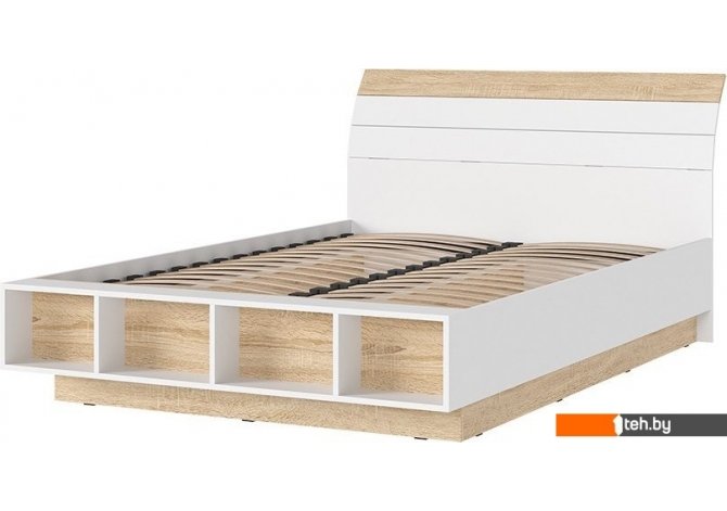 | Информация | - Ортопедическое основание с гнутыми ламелями обеспечивает правильную поддержку матраса, способствуя здоровому и комфортному сну. - Изголовье с декоративной вставкой под дерево добавляет стильный акцент, гармонично вписываясь в любой интерьер. - Вместительные открытые ниши в основании идеально подходят для хранения книг, текстиля и других необходимых вещей, что делает кровать не только красивой, но и функциональной. - Контраст белого цвета и текстуры светлого дуба создает ощущение легкости, что делает эту кровать универсальным решением для вашей спальни. - Не забудьте, что матрас, подушки и постельные принадлежности в комплектацию не входят. |