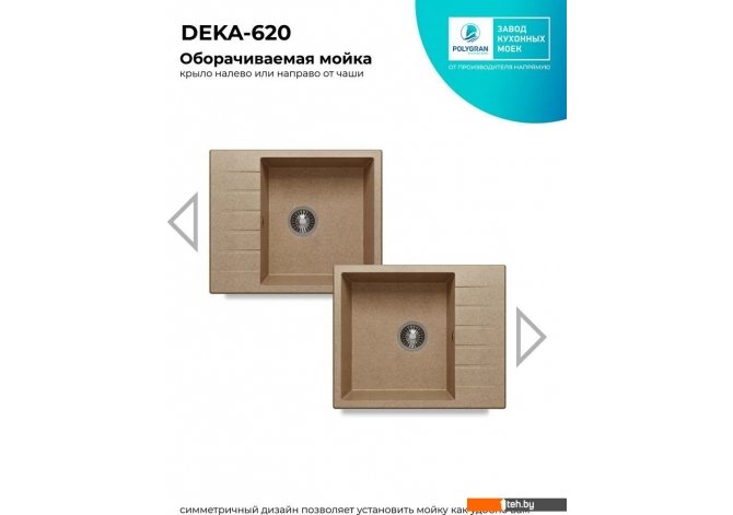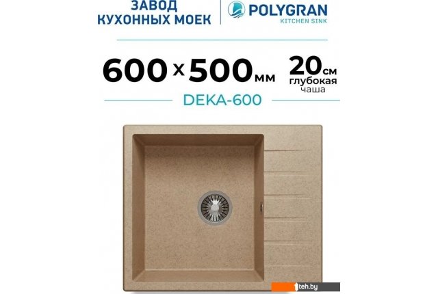 Фотографии, описание и технические характеристики модели мойки для кухни Polygran Deka 600 (песочный) взяты из открытых источников, официального сайта производителя или представительства Polygran в Республике Беларусь.