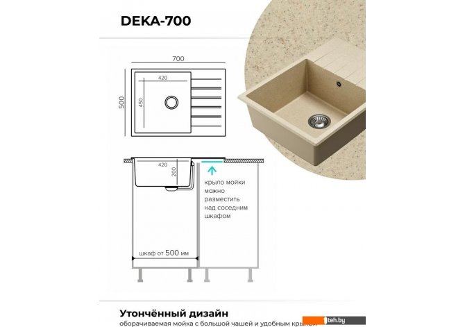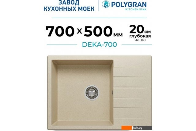 Фотографии, описание и технические характеристики модели мойки для кухни Polygran Deka 700 (опал) взяты из открытых источников, официального сайта производителя или представительства Polygran в Республике Беларусь.