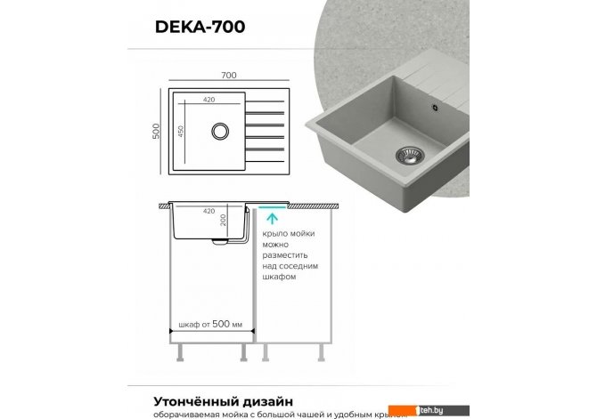 Фотографии, описание и технические характеристики модели мойки для кухни Polygran Deka 700 (серый) взяты из открытых источников, официального сайта производителя или представительства Polygran в Республике Беларусь.