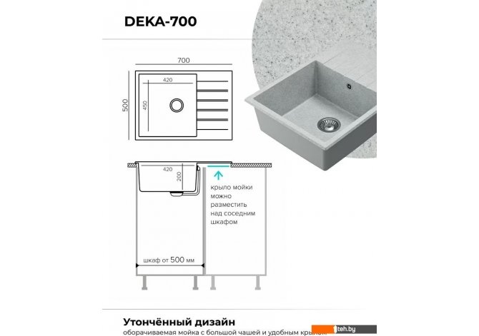 Если хотите купить мойка для кухни Polygran Deka 700 (светло-серый) то следует уточнить все параметры и габариты модели перед покупкой. Представленые характеристики на сайте 1teh.by могут отличаться от действительных или указанных производителем. Описание, фото товара и технические характеристики представлены для справки.