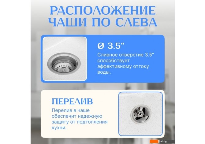 | Диаметр сливного отверстия | 3.5" |