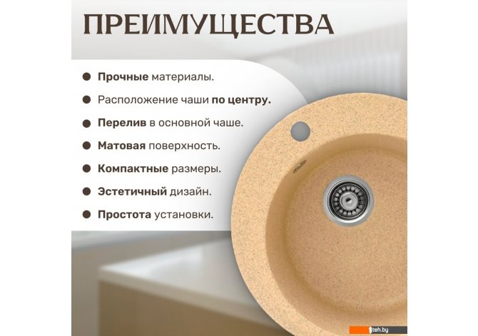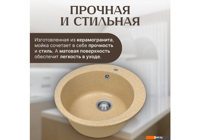| Информация | - Мойка кухонная Linea — это стильный и функциональный элемент, который сделает вашу кухню более комфортной. Изготовленная из керамогранита, она обладает высокой прочностью и стойкостью к механическим повреждениям. Круглая или овальная форма мойки позволяет легко вписать её в любой интерьер, а бежевый цвет с матовой поверхностью создает уютную атмосферу, гармонируя с различными стилями оформления. |