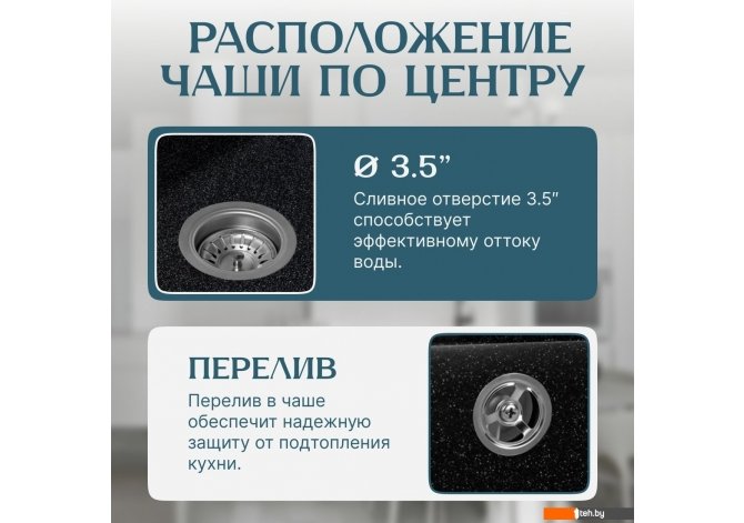 | Диаметр сливного отверстия | 3.5" |