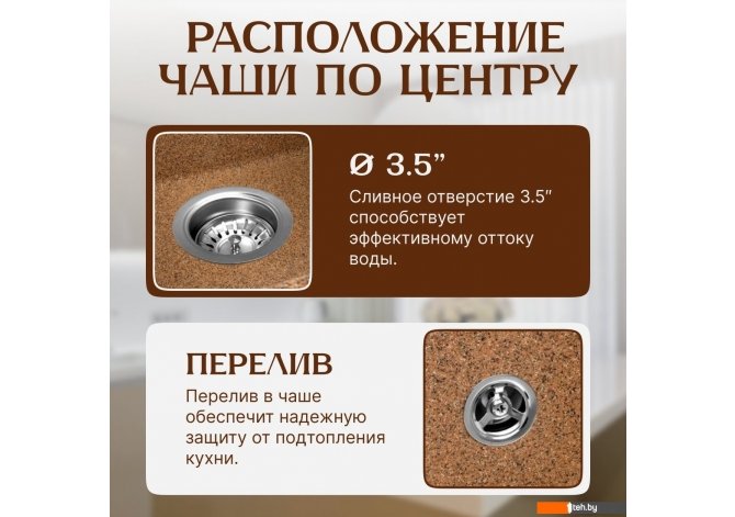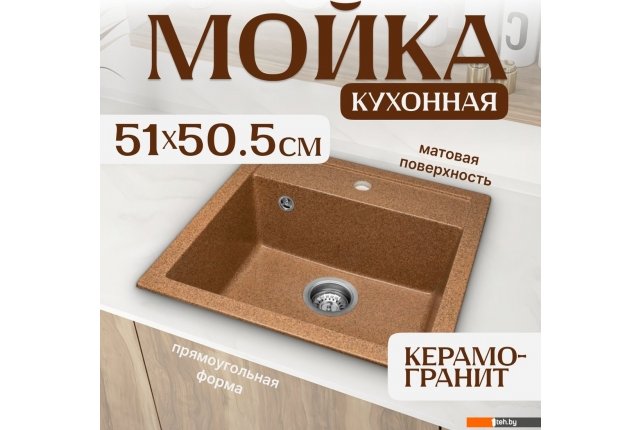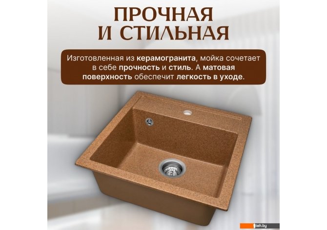 | Информация | - Мойка кухонная Terra — это стильное и функциональное решение для вашего кухонного пространства. Изготовленная из керамогранита, она сочетает прочность и долговечность, что делает её идеальным выбором для любой кухни. |