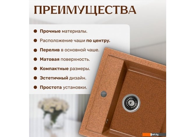 Фотографии, описание и технические характеристики модели мойки для кухни Saniteco Terra (терракот) взяты из открытых источников, официального сайта производителя или представительства Saniteco в Республике Беларусь.